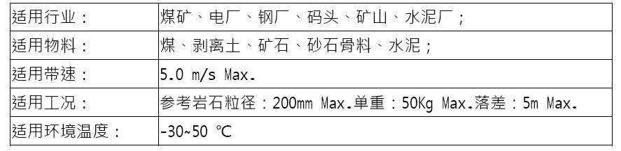 Long belt life. When used with the anti-spill skirt, it can effectively seal both sides of the falling point to prevent material and dust from overflowing.